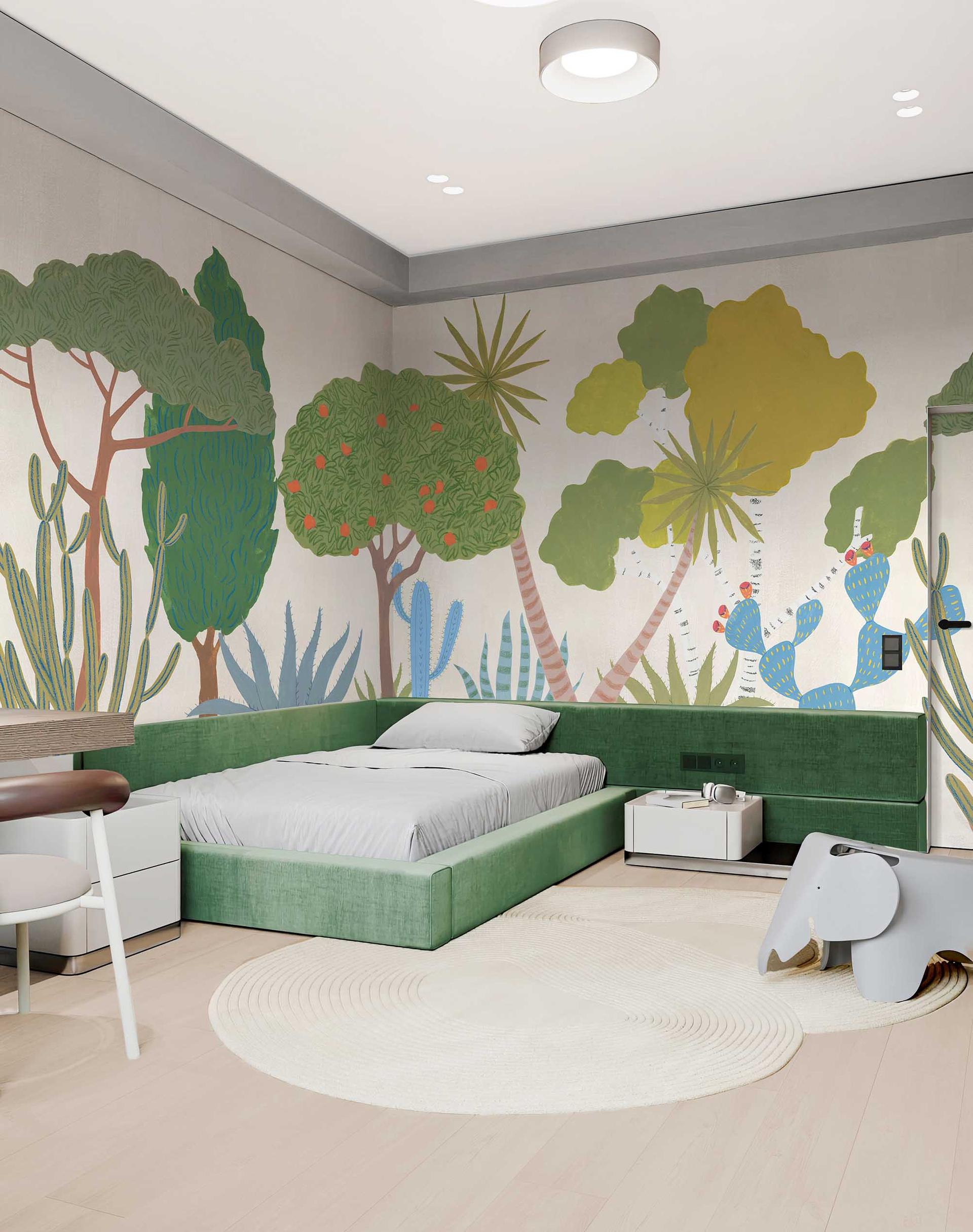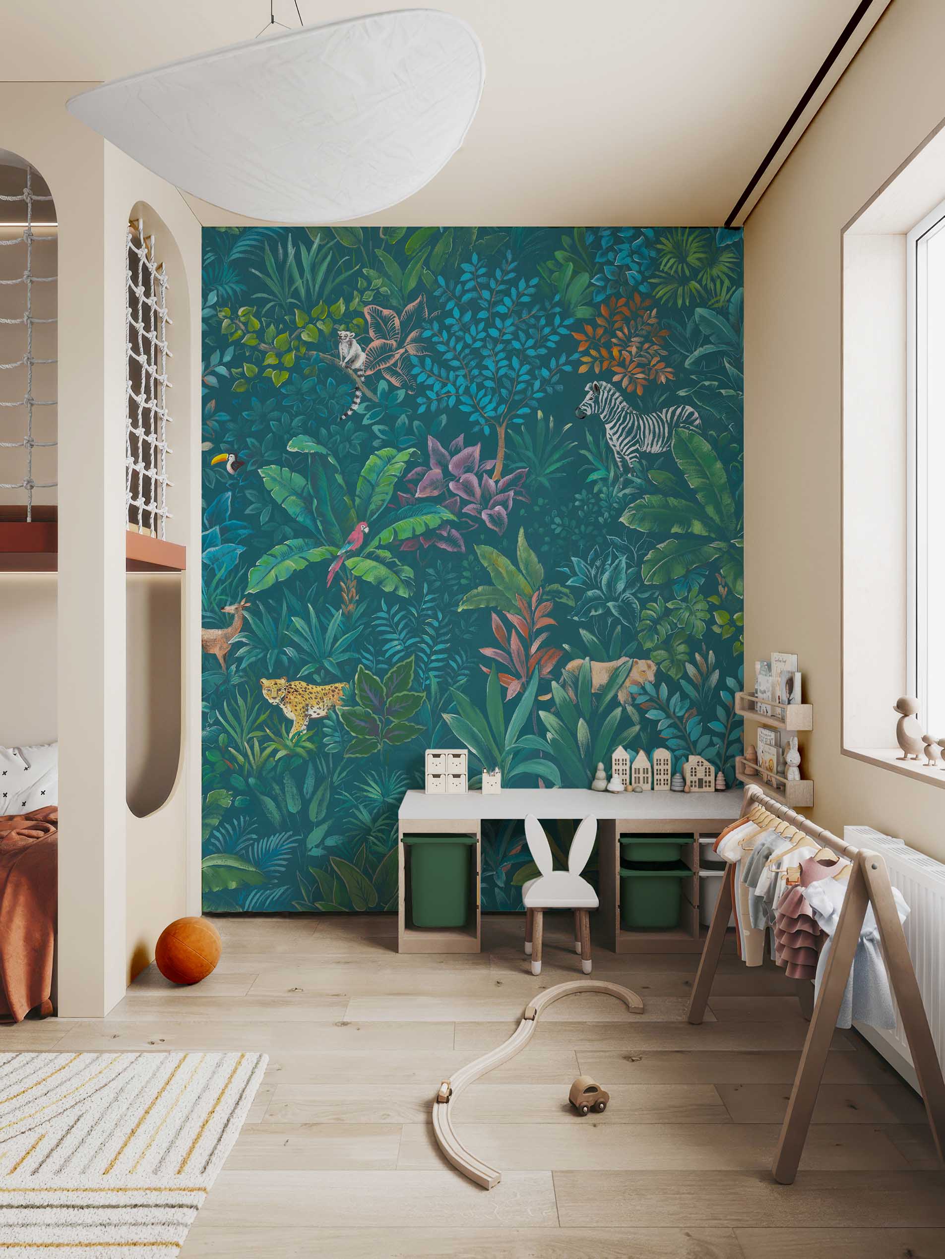 La Kids Collection firmata Wall/Pepper® si arricchisce di quattro grafiche inedite, pensate per trasformare le stanze dei più piccoli in ‘mondi’ da esplorare ogni giorno, donando colore all’atmosfera e suggerendo una maggiore sensazione di serenità. Realizzate, come sempre, con materiali sostenibili e certificati, le nuove carte da parati assicurano ambienti sani e protetti, per questo la loro applicazione risulta perfetta sia in ambito domestico sia pubblico, come scuole o altri spazi dedicati all’infanzia. Inizia, così, un sorprendente ‘viaggio’ tra natura e fantasia: dai pini marittimi di CampeggioToscano alla giungla vibrante di Guyana, dal giardino incantato di Stranger Trees, dove frutteti, cactus e sempreverdi convivono in armonia, alle scene allegre e movimentate di Trova le arance, dove Gina la giraffa, Coco il coccodrillo e Leo la lepre guidano i bambini in una giocosa avventura, una simpatica ‘caccia al tesoro a parete’ per ritrovare le arance della scimmietta Betta, trasformando la carta da parati in un racconto da vivere ogni giorno. WP/Strong, WP/H2O e WP/Acoustic sono i supporti suggeriti per realizzare le grafiche Kids: materiali resinati, ad alte prestazioni, caratterizzati da superfici antibatteriche e facilmente lavabili, ideali per garantire igiene e sicurezza. WP/Strong è la carta da parati in TNT particolarmente resistente all’usura; WP/H2O è la carta da parati idrorepellente in fibra di vetro, ideale per le stanze da bagno dei bambini; WP/Acoustic è il materiale fonoassorbente che riduce il riverbero, perfetto per assicurare un maggior benessere acustico.