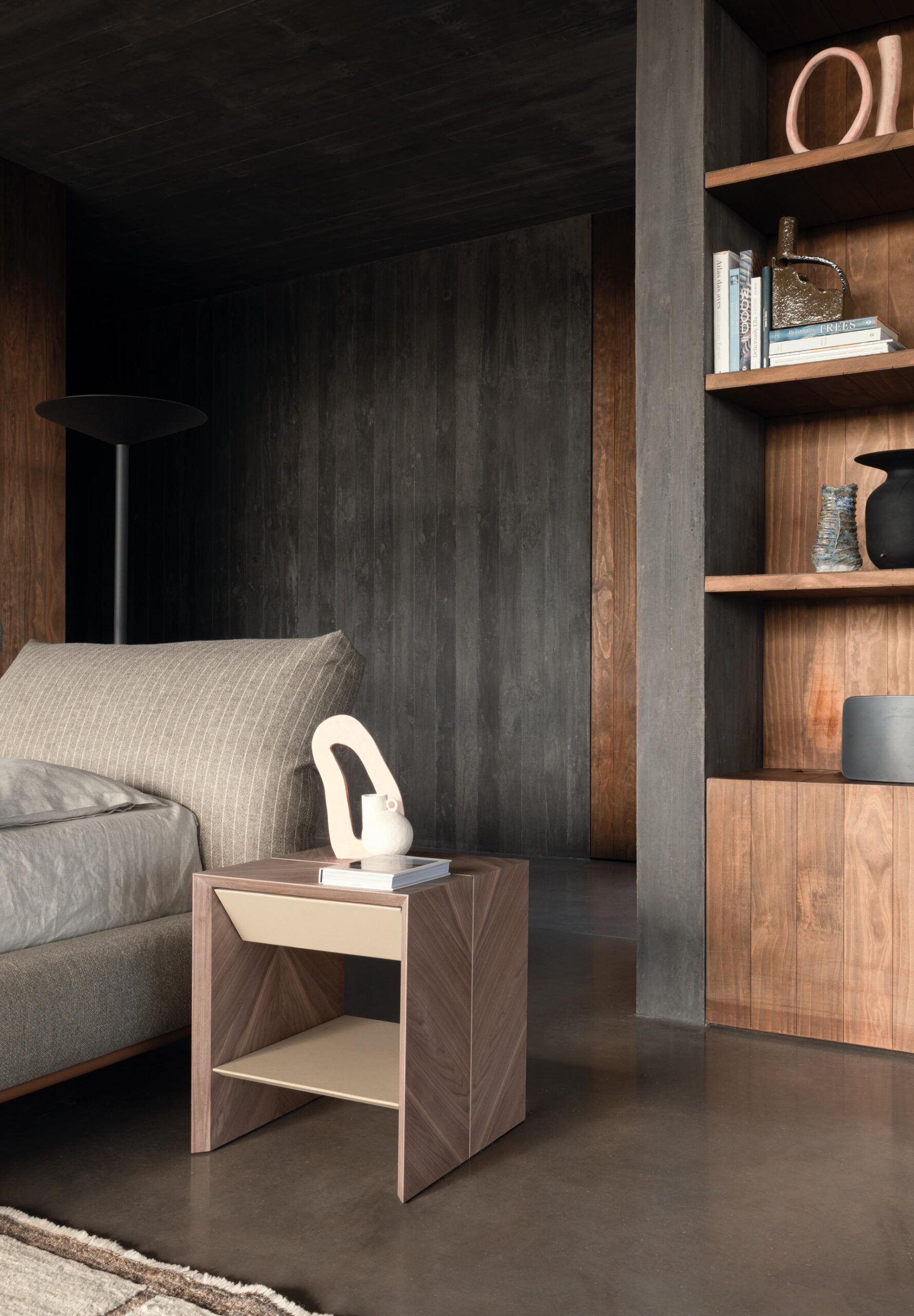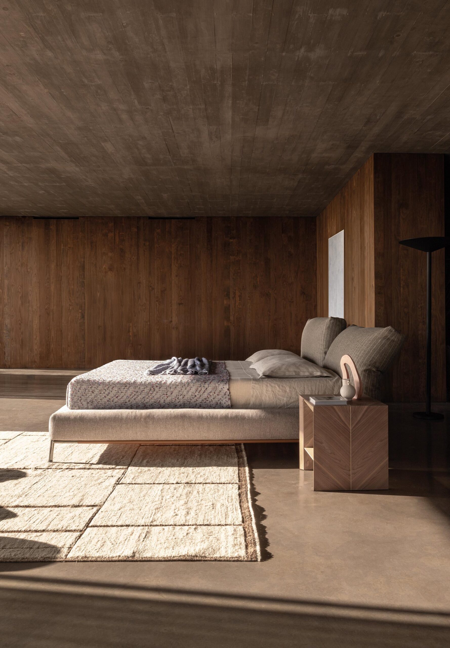 Un luogo dove il tempo si fa morbido, i dettagli si accordano al ritmo del riposo e la concentrazione trova spazio anche quando le incombenze professionali bussano alla porta di casa. Più di una camera da letto, una suite personale disegnata da cierre1972, in cui comfort e funzionalità si incontrano in un equilibrio sartoriale e senza tempo. Pezzi unici, disegnati con cura – scelti tra le novità 2025 e pezzi cult – che solo una volta uniti trovano la loro giusta misura, come i dettagli di un abito cucito su di sé. I volumi calibrati con precisione e i toni caldi creano un’atmosfera raccolta e intima, lontana dalle mode passeggere. Al centro, come un segno deciso nello spazio, il letto Chapeau di Stefano Conficconi, equilibrio formale e dettagli ricercati per coniugare accoglienza e stile. Ai lati, i comodini Avalon di Emilio Nanni e Arona di Marco Fumagalli, con il loro design essenziale e le forme pure, introducono rigore e coerenza alla composizione. Linee nette, volumi asciutti, un minimalismo che non rinuncia al carattere. A completare l’ambiente, lo scrittoio Zed sempre di Marco Fumagalli, pensato come spazio per il lavoro e la riflessione personale: essenziale e generoso, capace di unire praticità a una presenza raffinata. Ad accompagnarlo, la sedia Giorgio di Maurizio Manzoni, pelle a taglio vivo e struttura tubolare definiscono un’eleganza essenziale, funzionale e di forte impatto visivo. Il risultato è un rifugio dove praticità e bellezza dialogano senza soluzione di continuità, dove ogni dettaglio evoca benessere e ogni elemento rende il riposo un momento autentico. Qui il relax non è un’idea, ma una promessa mantenuta.