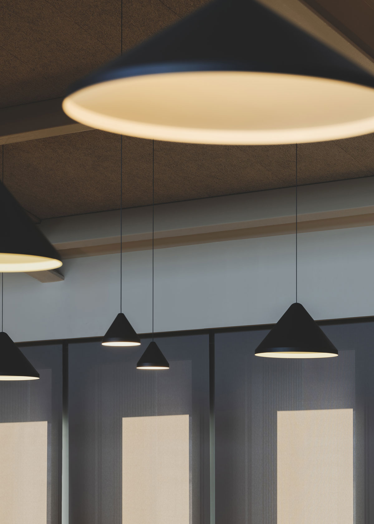 Il progetto Switch, la nuova sede globale di Simon a Barcellona, è il risultato di diverse azioni volte a consolidare i quattro pilastri fondamentali dell’impresa: collaborazione, benessere, sostenibilità e innovazione. Switch non è solo il nome della nuova sede aziendale di Simon e un esempio dell’attuale ruolo di avanguardia in ambito tecnologico svolto dal marchio e della sua proiezione internazionale. Ma è anche un omaggio alla sua storia, un riconoscimento di quel percorso iniziato nel 1916 e consolidato con la costruzione della fabbrica nel quartiere Poblenou di Barcellona negli anni Cinquanta. Diretto da Michela Mezzavilla, il lighting design doveva rispondere a due esigenze principali: l’efficienza energetica e l’applicazione del prodotto Simon al massimo delle sue potenzialità. Sei lampade Vibia per accompagnare momenti diversi. È qui, all’incrocio tra spazio e tempo, che entra in gioco la scelta degli apparecchi Vibia più adatti a ogni situazione, sfruttando anche i vantaggi della luce dinamica. Un esempio: Plusminus, di Diez Office, la cui cinghia in tessuto permette di personalizzare il design e di adattarlo a qualsiasi spazio tramite il ricorso a una grande varietà di apparecchi. Proseguendo nell’area direzionale di Simon, troviamo una zona living in cui gioca un ruolo speciale la lampada Ghost, disegnata da Arik Levy. La sua presenza luminosa ed eterea emana vibrazioni rilassanti, perfette per accompagnare i momenti di tranquillità che caratterizzano questo spazio. Nelle aree più sociali dell’edificio come la sala pranzo e la mensa, l’obiettivo era favorire un’atmosfera dinamica che invitasse alla socializzazione, conferendo alla luce un ruolo attivo nell’ambiente, non solo dal punto di vista estetico ma anche funzionale. A seconda della distribuzione dello spazio, la lampada a sospensione Flamingo di Antoni Arola si alterna alla collezione North, anch’essa di Arik Levy. North pendant illumina il percorso dei tavoli e delle panche, con una luce diffusa che invita a piacevoli conversazioni dopo cena. In altre zone dell’area pranzo North è utilizzata da sola o in combinazione con la versione floor, i cui bracci permettono di orientare la luce a piacimento e giocare al con l’estetica dell’inclinazione, che si allinea a quella del soffitto. Nell’ampia area di lavoro della sede di Simon, con una distribuzione lineare e ordinata delle diverse postazioni, spicca la collezione Pin di Ichiro Iwasaki nella sua versione da tavolo, capace di esaltare la continuità dell’estetica minimalista dello spazio. Il progetto di ristrutturazione dell’ex fabbrica Simon, su un’area di oltre 12mila metri quadrati, fonde il recupero del passato industriale con il ricorso a un’architettura di qualità, che si apre all’innovazione tecnologica senza dimenticare la sostenibilità ambientale e il benessere delle persone. Tutti valori che caratterizzano anche il DNA di Vibia.
