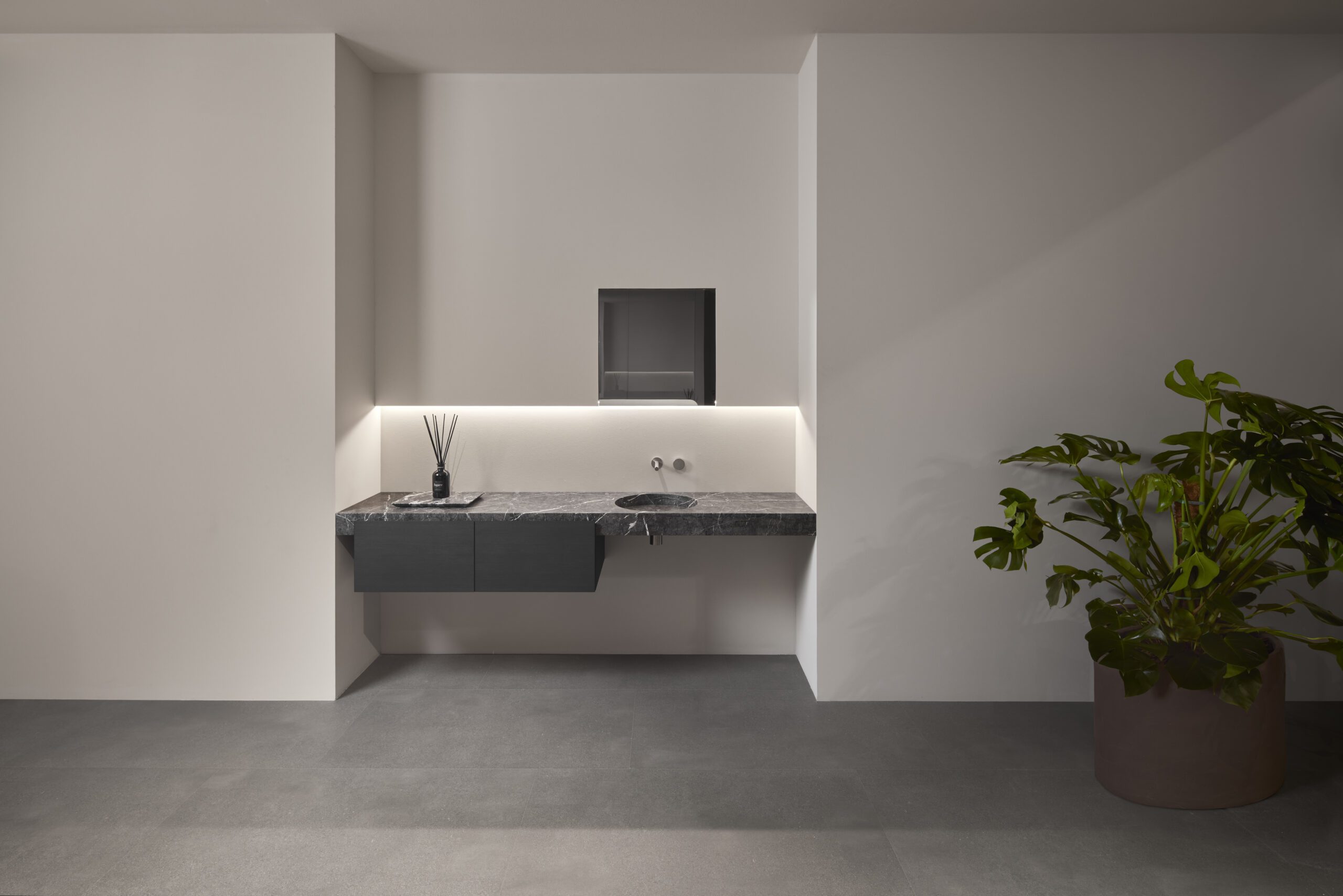 A Fortepiano (design AL Studio), la nuova collezione firmata antoniolupi, incarna l’essenza di un design che affonda le sue radici nella purezza e nella forza della materia. Il suo fascino misterioso risiede nella capacità di non rivelare subito la sua essenza: frontalmente, il piano in marmo appare come un blocco compatto e solido, ma la sua vera bellezza si svela attraverso una lavorazione innovativa che lo rende unico nel suo genere. Il nome Fortepiano è un gioco di parole che evoca due significati profondi: da un lato, il pianoforte, simbolo di armonia e composizione, suggerisce un’esperienza sensoriale che invita al relax; dall’altro, l’espressione di solidità e consistenza richiama la potenza stessa della materia, che nel caso del marmo massello diventa protagonista indiscussa.La collezione non è solo una serie di prodotti, ma un nuovo concetto di progettazione dei piani in marmo, pensato per essere modulare o a misura, con lavabi che si integrano perfettamente nella superficie continua del piano. Questi lavabi, disponibili in forme tonde, ovali, quadrate o rettangolari, sono scavati direttamente nel marmo, creando vuoti e depressioni che sembrano scolpiti dalla stessa forza dell’acqua che vi scorre sopra.