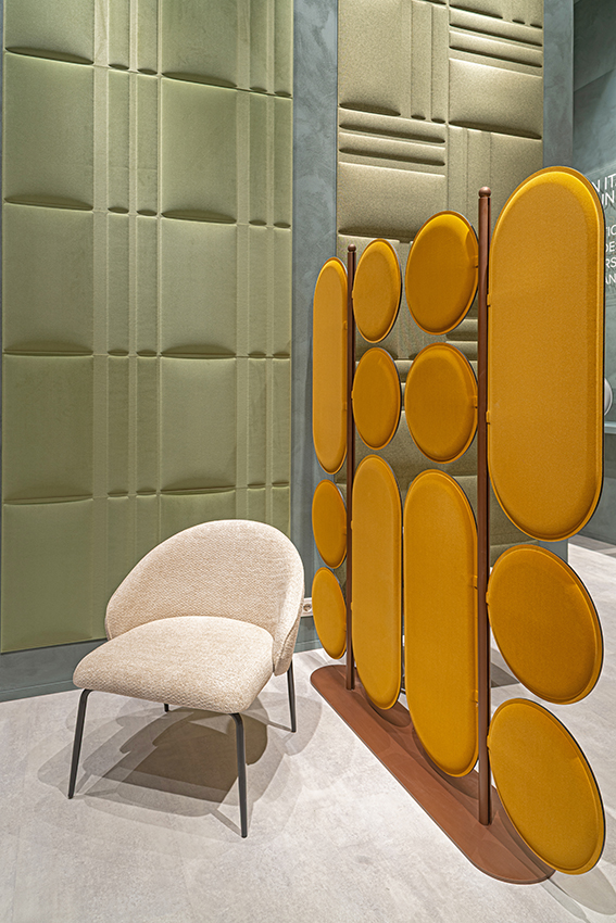 Alma, con disegni verticali e circolari, e Trame, con motivi lineari verticali, offrono infinite possibilità compositive in ambiti residenziali, contract e commerciali. Entrambe si inseriscono nel filone avviato da Oblique, la piastrella cm60x60 che ha segnato l’ingresso di Isolspacenel mondo delle boiserie acustiche decorative. Nella collezione Flora, i tre pannelli bifacciali a forma di foglia si rivelano veri e propri strumenti di design acustico: posizionabili a soffitto e a parete con appositi accessori, oppure in modalità autoportante nelle versioni desk, stand e totem, sono pensati per ogni ambiente. La stessa logica modulare si ritrova in Silhouette, che propone forme geometriche differenti – circolare, ovale e ovale con base dritta – mantenendo l’attenzione al dettaglio e alla resa visiva. Novità anche per la linea Frame, che si amplia con l’introduzione del formato circolare. Oltre al nuovo formato, anche Frame Rettangolare ed Esagonale oggisi distinguono anche per la possibilità di essere sfoderabili e lavabili, mantenendo l’estetica grazie ai bordi rivestiti in continuità con la stampa. Oltre alle versioni Pantone e Original (stampabile con foto o immagini su richiesta), Frame è disponibile anche con nuovi rivestimenti in tessuto.