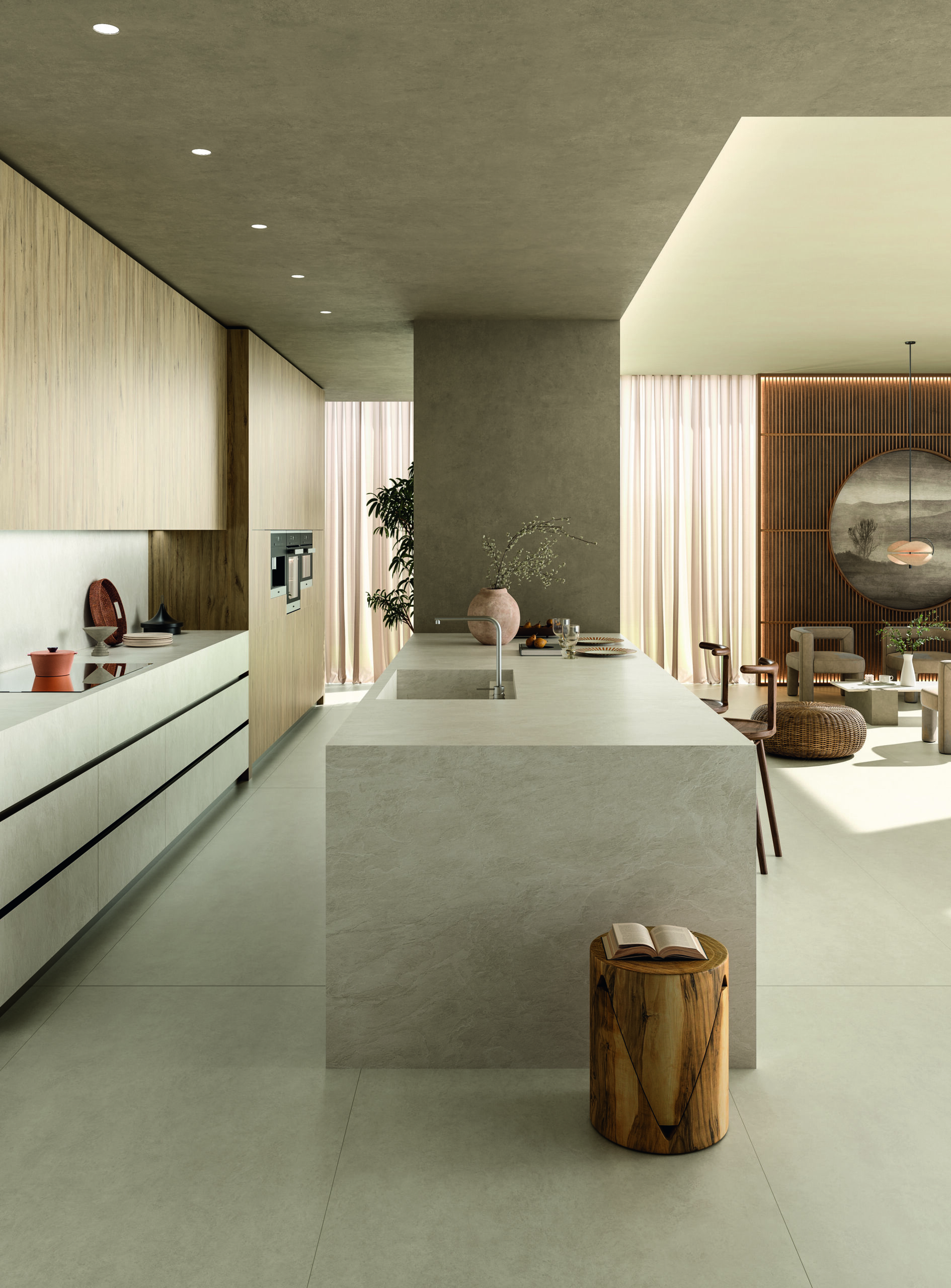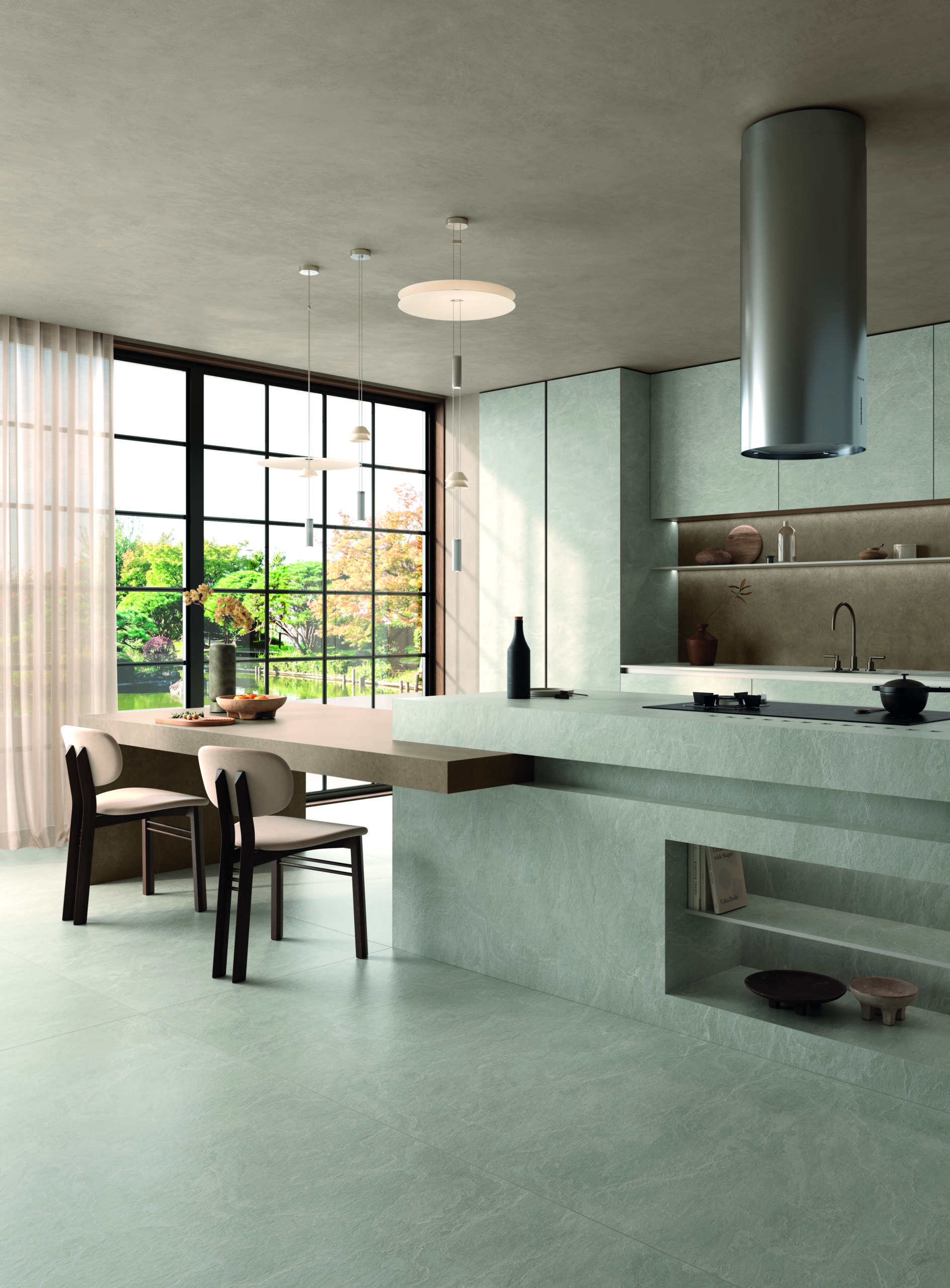 È ancora una volta la Natura a ispirare la visione creativa di Laminam, che alla 65esima edizione del Salone del Mobile stupisce con superfici ceramiche rivoluzionarie, originali, versatili. La Natura disegna, Laminam crea e allarga gli orizzonti di architetti e designer, ampliando ulteriormente una gamma tra le più vaste del settore: spessori, superfici e la nuova finitura DNA per plasmare spazi unici, in cui vivere bene ed essere sé stessi. La goccia cade e incontra la terra, la accarezza, la circonda. Si adatta, si espande, segue ogni sua forma. Riempie gli spazi, scivola sulle superfici, si insinua nelle cavità con grazia spontanea. È morbida e avvolgente, eppure decisa nel suo percorso. Così sono le superfici twO by Laminam, le rivoluzionarie lastre ceramiche più sottili al mondo, leggere e duttili, capaci di adattarsi perfettamente a ogni ambiente valorizzandone la struttura senza alternarne l’essenza.La collezione Slate, omaggio alla grandiosità dei materiali naturali e al loro dialogo con la luce che invade gli spazi, si presenta al Salone del Mobile ampliata nella gamma. Alla configurazione in 2 e 5 millimetri di spessore, infatti, si aggiunge quella in 12 millimetri, adatta per top cucina e tavoli. Si arricchiscono anche le serie: I Naturali con Calacatta Viola Book Match in 12mm, Diamond con Cristallo Macchia Vecchia Book Match in 12mm e la collezione Hado, con Travertino Bianco bocciardato in spessore 5 mm. DNA è la finitura che modifica la struttura della lastra stessa per riprodurre in modo sempre più fedele la forza e il movimento dinamico della Natura. Con grazia spontanea, DNA imprime un codice unico a ciascuna superficie, fotografandola nel pieno del suo potenziale. Le lastre con finitura DNA sono caratterizzate da un rilievo delicato, ma deciso, che segue la grafica delle irregolarità originali traducendole in elemento distintivo