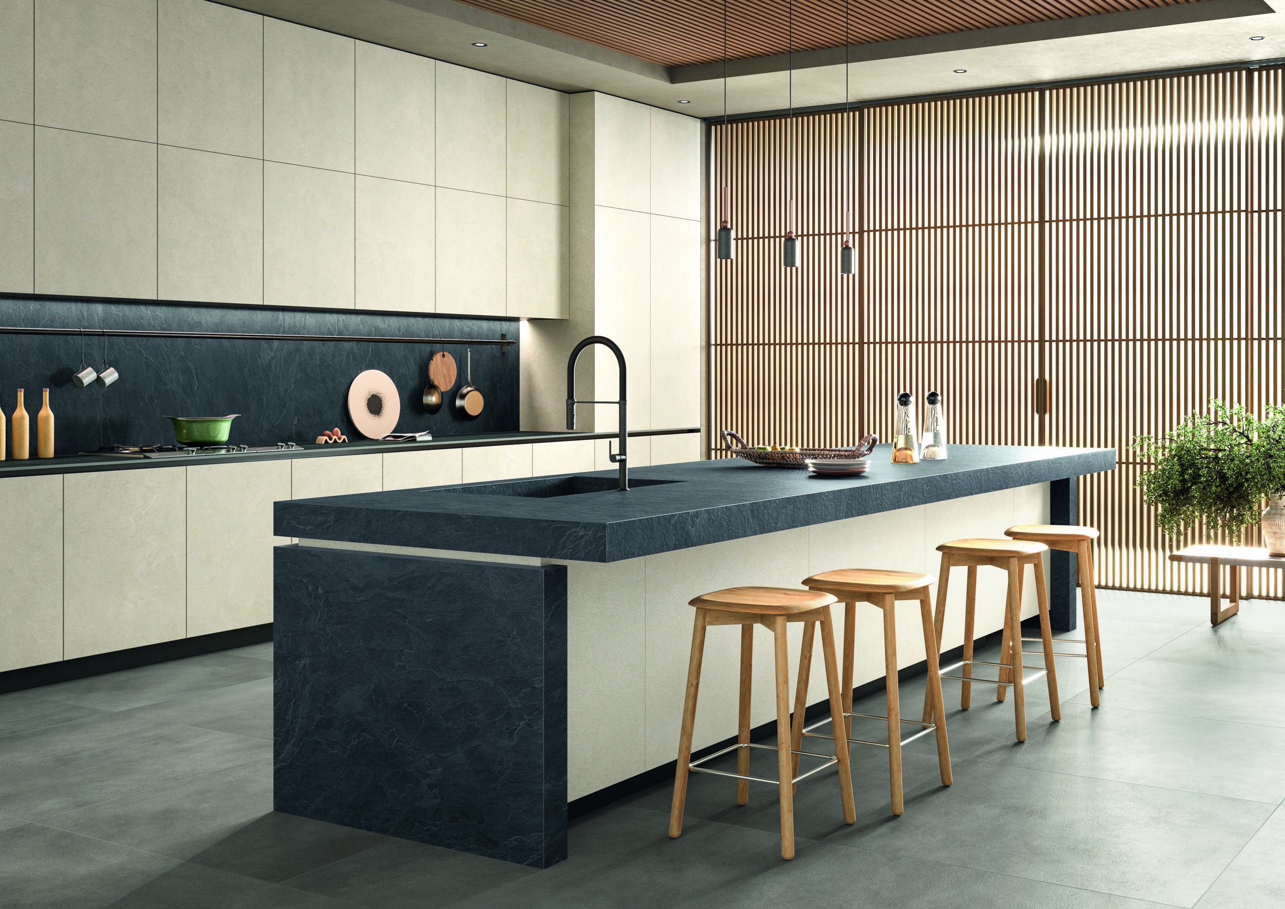 che emerge con potente eleganza dalla superficie, attribuendole una nuova dimensione. Al Salone del Mobile, Laminam ha presentato nella